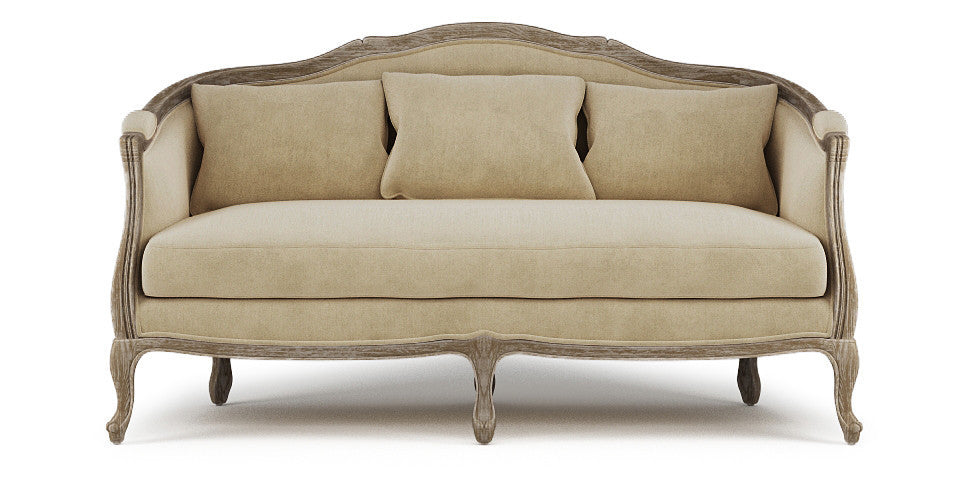 No detail is left unturned in the high quality craftsmanship of the elegant Lucy 3 Seater. Featuring solid oak construction with scalloped and scrolled wood trim in a beautiful distressed finish provides the perfect blend of comfort and style.